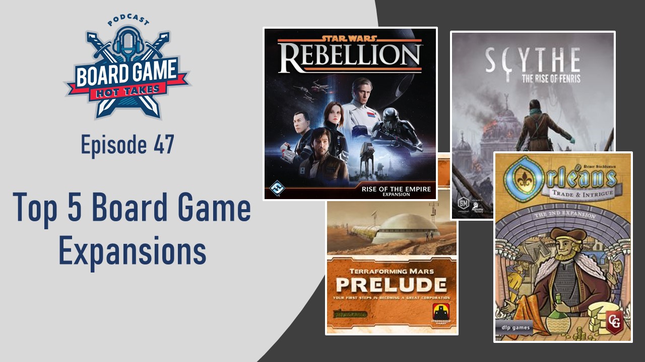 In Episode 47 we discuss our picks for the top 5 board games expansions!