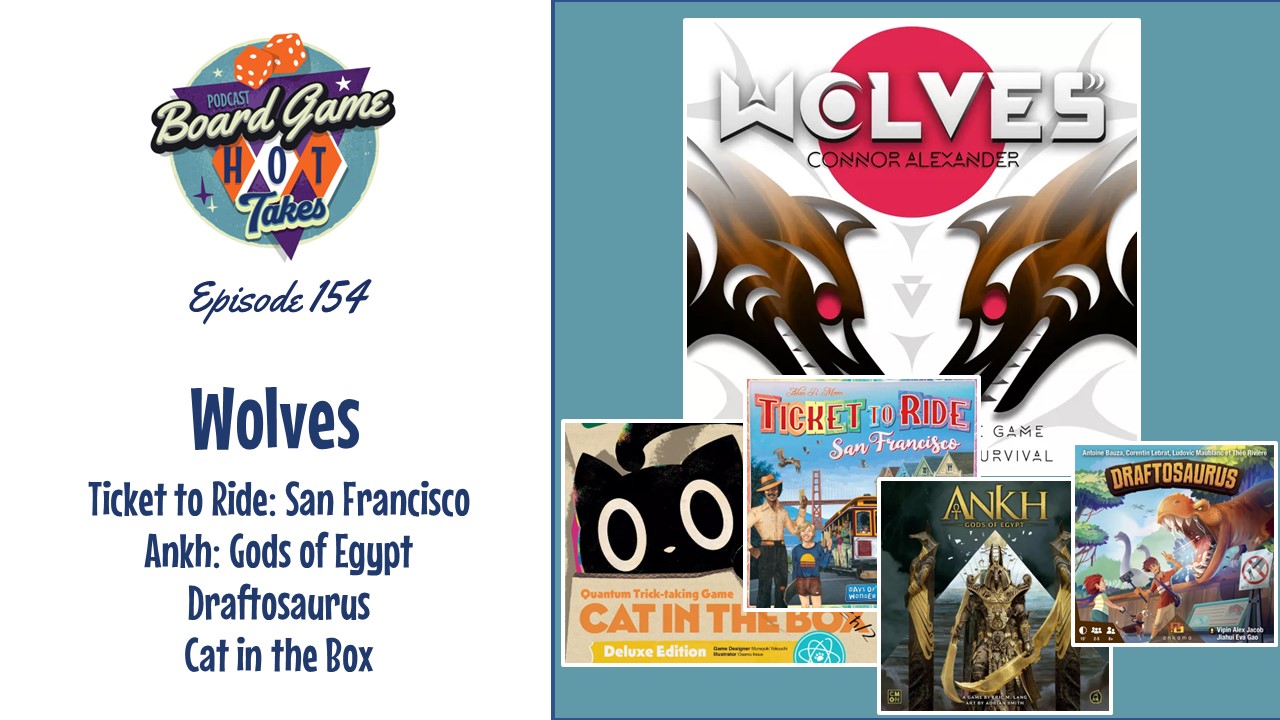 In Episode 154 we provide our hot take review of Wolves covering the mechanisms, the production, and our overall feelings of the game. We also discuss a poll about thinking about designing board games. Then we discuss some board games on our table including Patchwork Doodle, Ticket to Ride: San Francisco, Ankh: Gods of Egypt,Continue reading “Wolves”