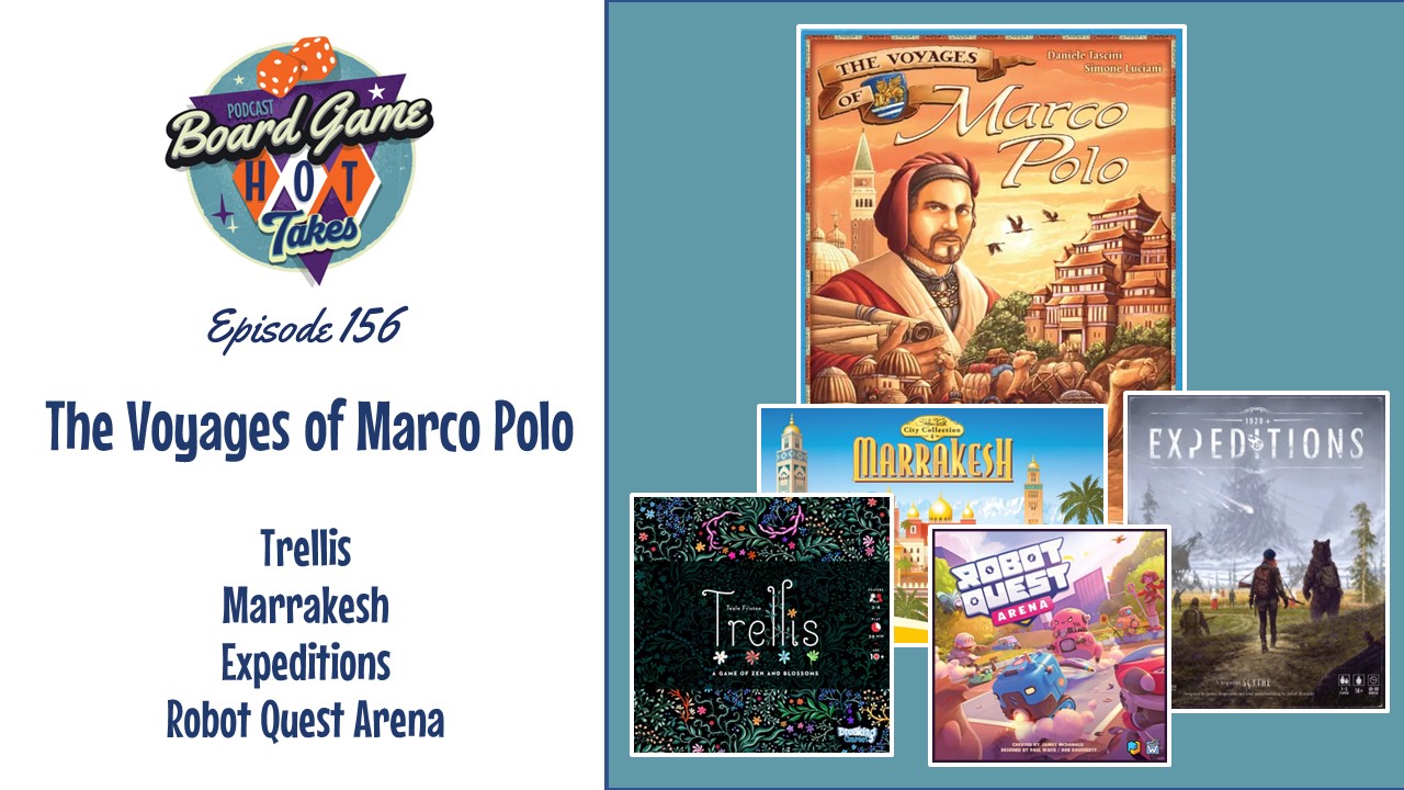 In Episode 156 we provide our hot take review of The Voyages of Marco Polo covering the mechanisms, the production, and our overall feelings of the game. We also discuss a poll about large box editions of games. Then we discuss some board games on our table including Trellis and Marrakesh and some first looksContinue reading “The Voyages of Marco Polo”